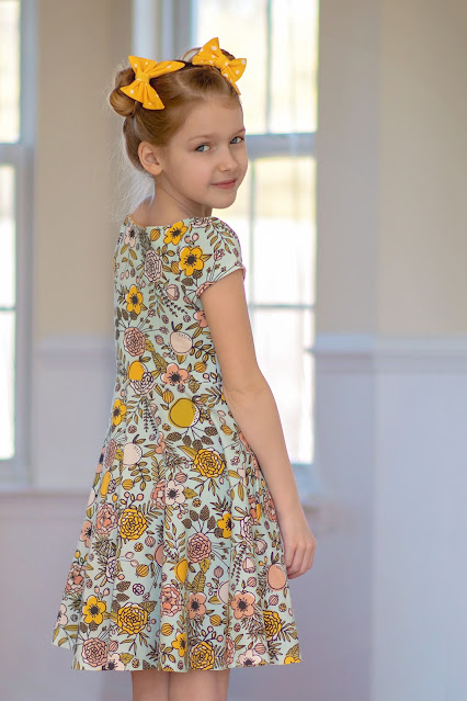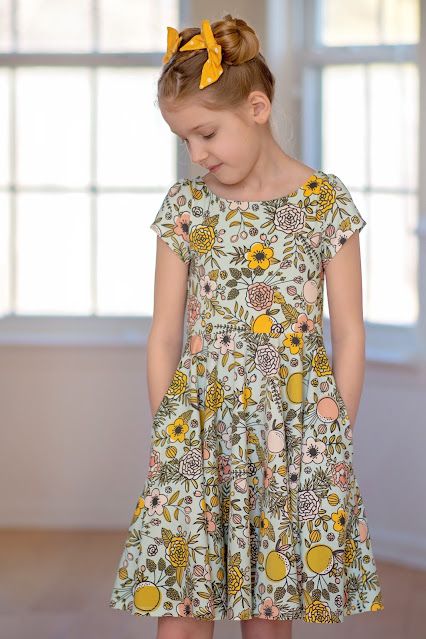 Knit patterns have quickly become some of my most used patterns. If you're new to knits and the first time is intimidating or your project didn't quite turn out as planned, do not give up! My first time was quite frankly a hot mess (but I made a lot of errors that could have been avoided if I had a list like the one above!). The Wattle is a great introductory pattern to knit -- the bodice is lined so there is no neckband to worry about and the skirt is a circle which is super easy to attach! I added the free pockets and accessorized with the Bluebell Bow in Baby Size.