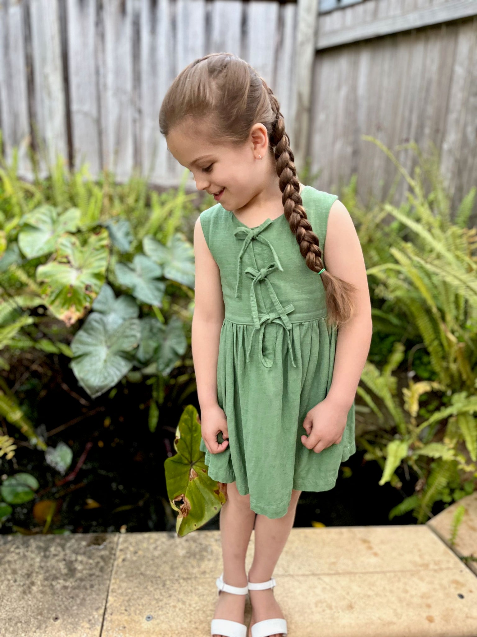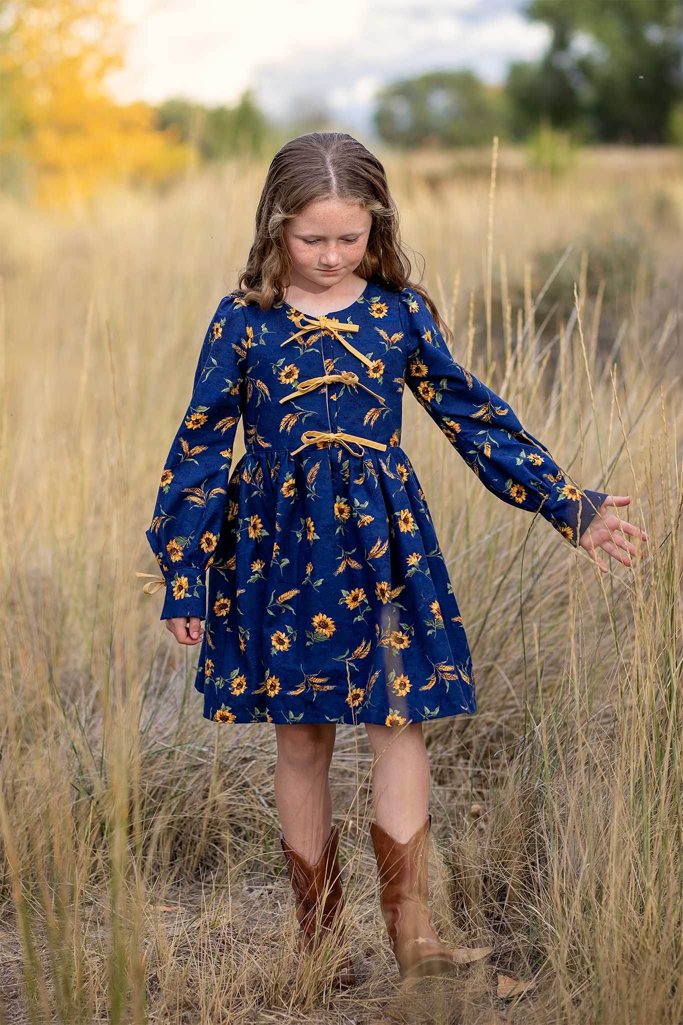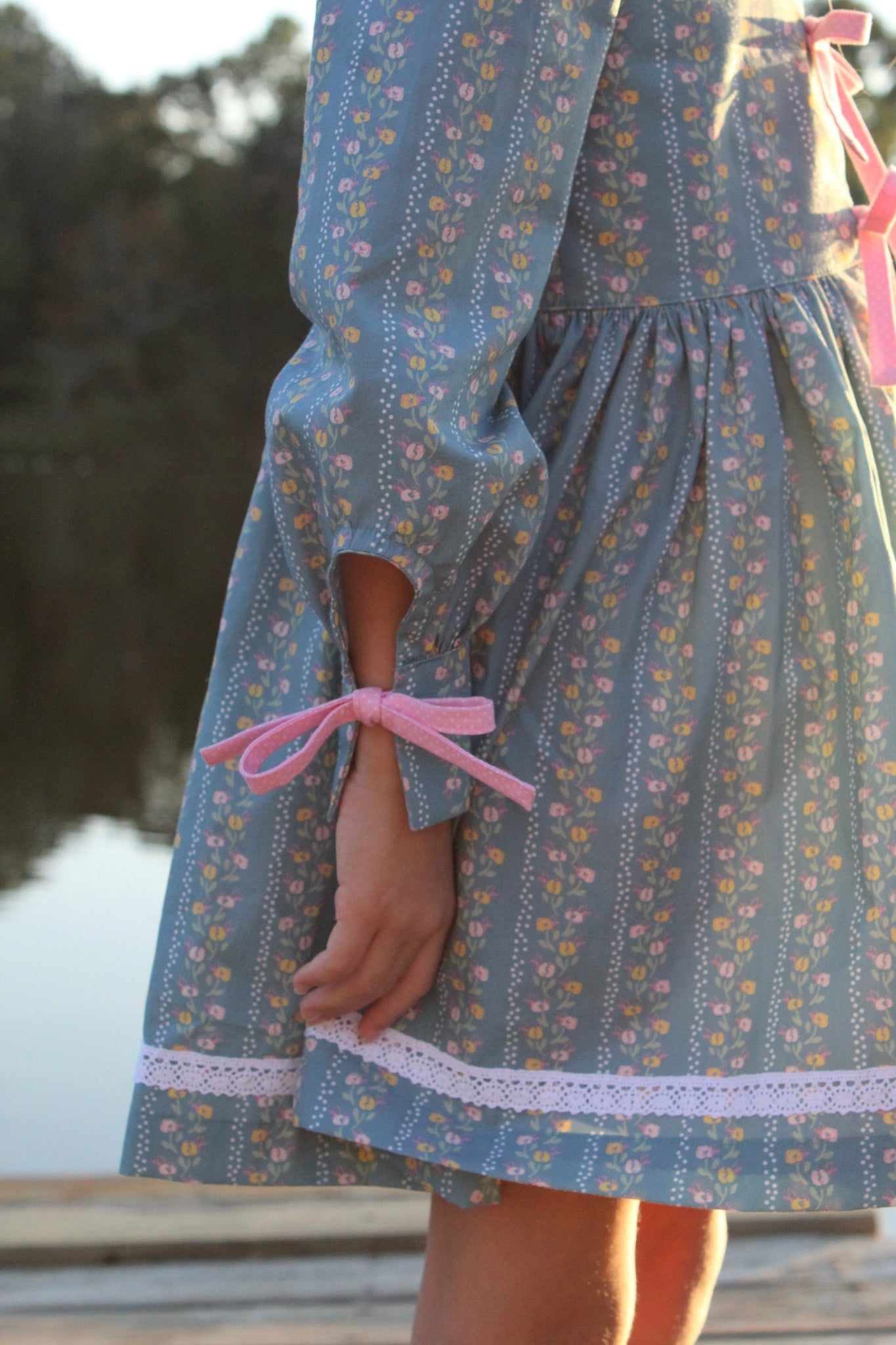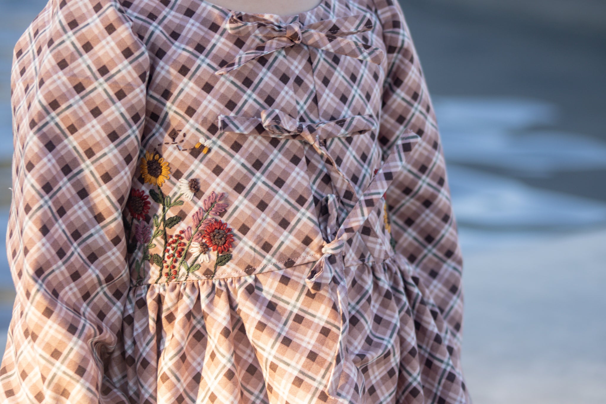 The Kiku Dress is a chic and versatile design, offered in both sleeveless and sleeved versions, making it perfect for year-round wear. Its standout feature is the modern front bow ties, adding a playful yet sophisticated touch. Behind the bows is a neatly constructed placket, ensuring modesty and comfortable coverage. The long sleeve option includes a charming tie detail at the cuff, giving the dress a refined finish.